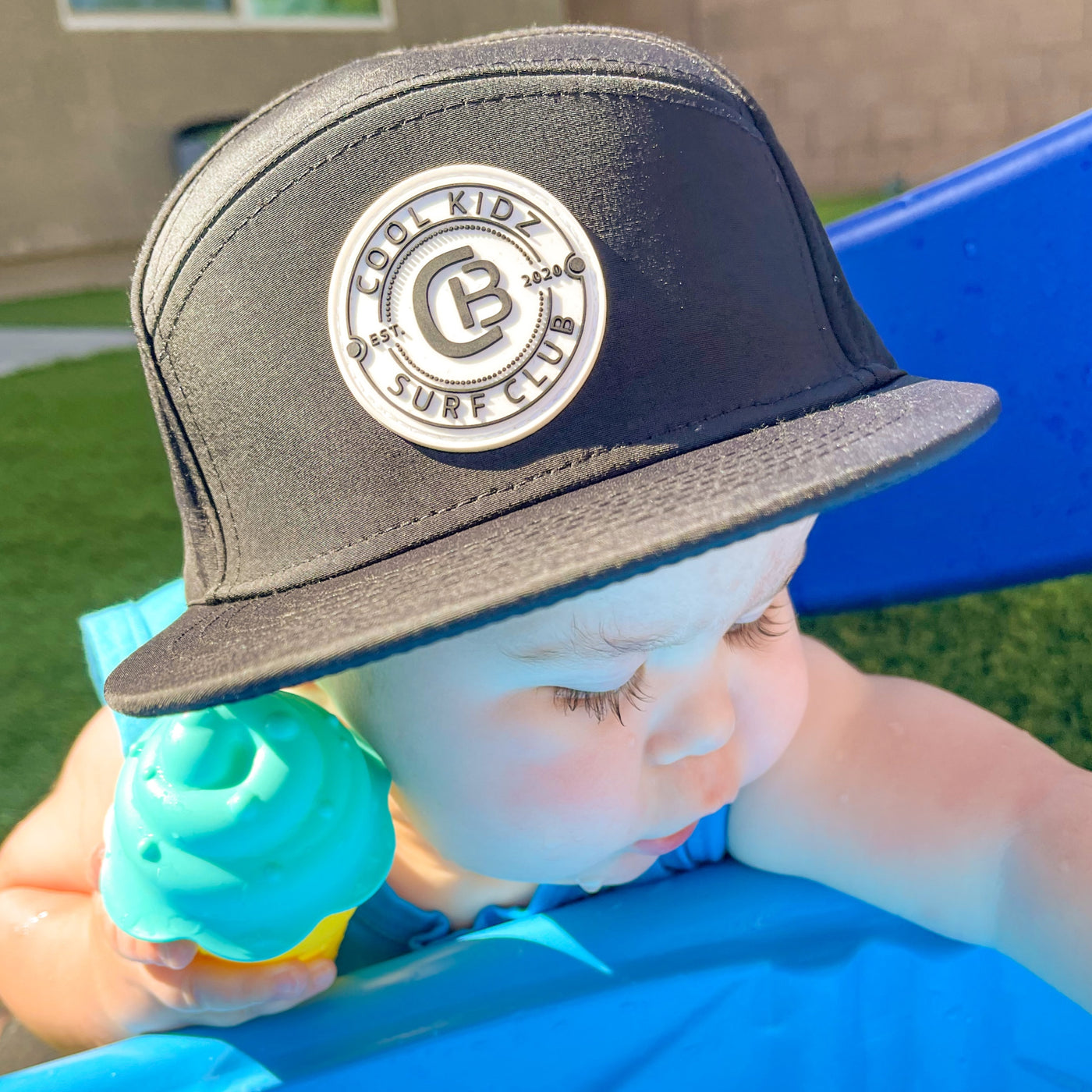 Hydro Hat! 6 panel design.Made of a high quality water repellant material & mesh designed to bead away water & prevent water absorption. This hat is water repellant and breathable. Rubber Patch & Signature rubber Cool Kid Label in the back. Available in Toddler & Youth sizes. Runs a little smaller than our traditional snapbacks.