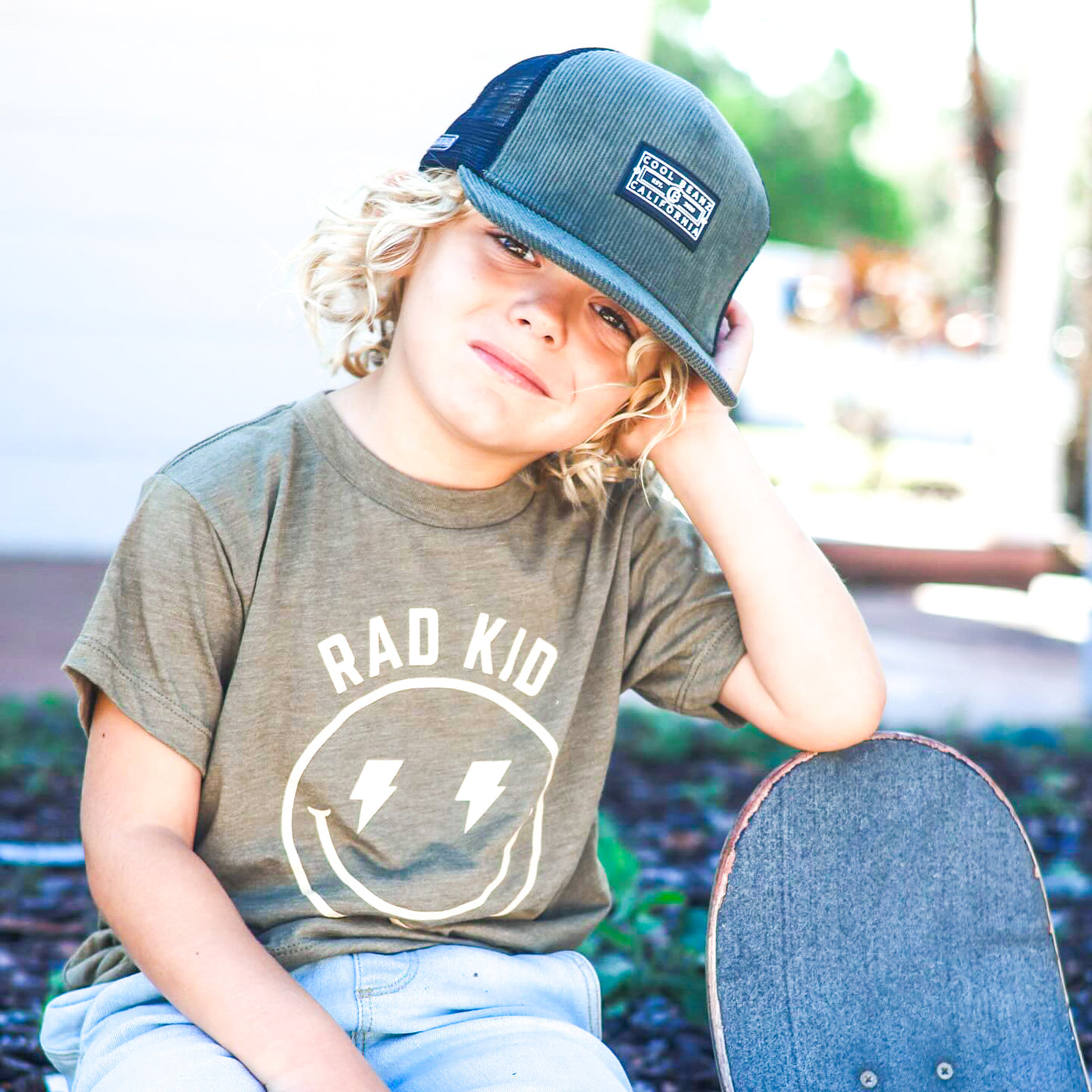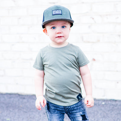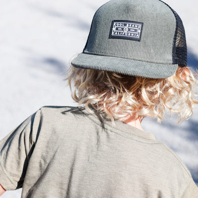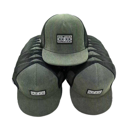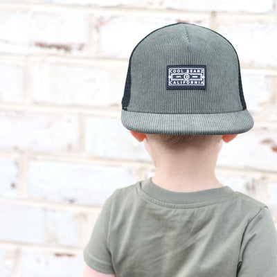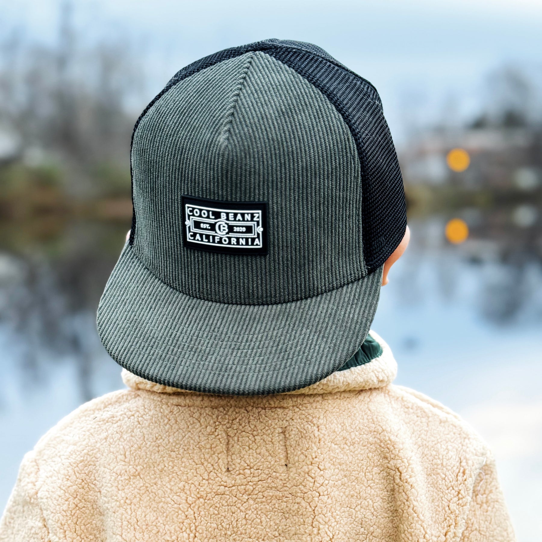 Get ready to make a stylish statement this season with our brand new olive green corduroy snap back hat with a touch of black mesh! And guess what? It's not just for babies and kids, we've got a Adult size available too. This hat is the ultimate accessory for your fall and winter outfits. With its super fun and trendy design, it's a must-have for the whole family. Get yours now and turn heads wherever you go!