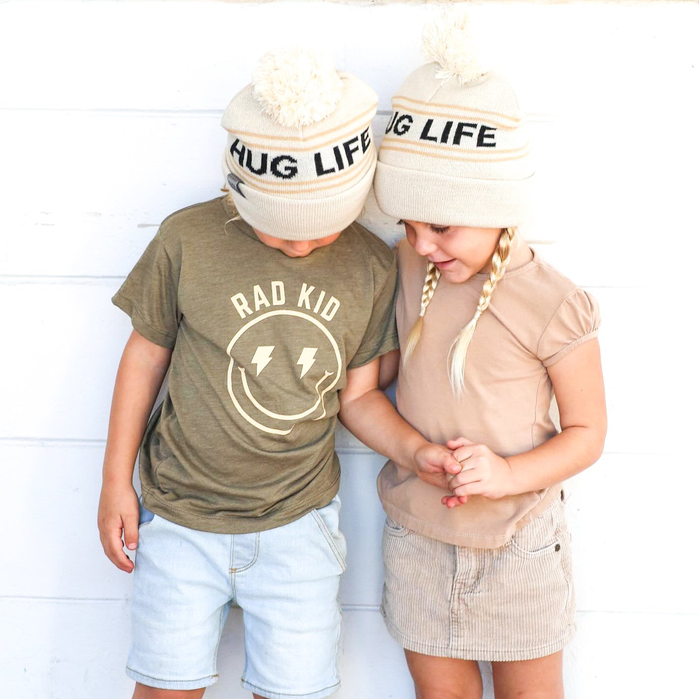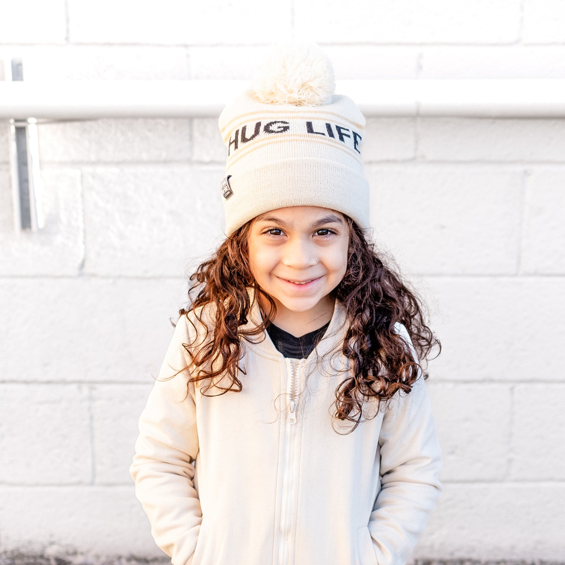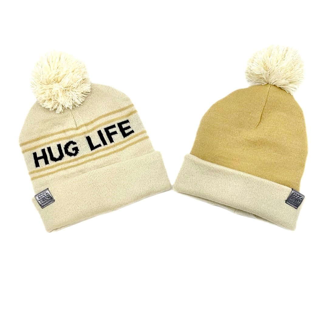 This Hug Life Reversible Beanie is perfect for all neutral-toned lovers. It features a reversible design with beige and crème coloring. Perfect for your little one, this beanie is comfy, cozy, and stylish. This beanie comes Infant, Toddler & Youth.