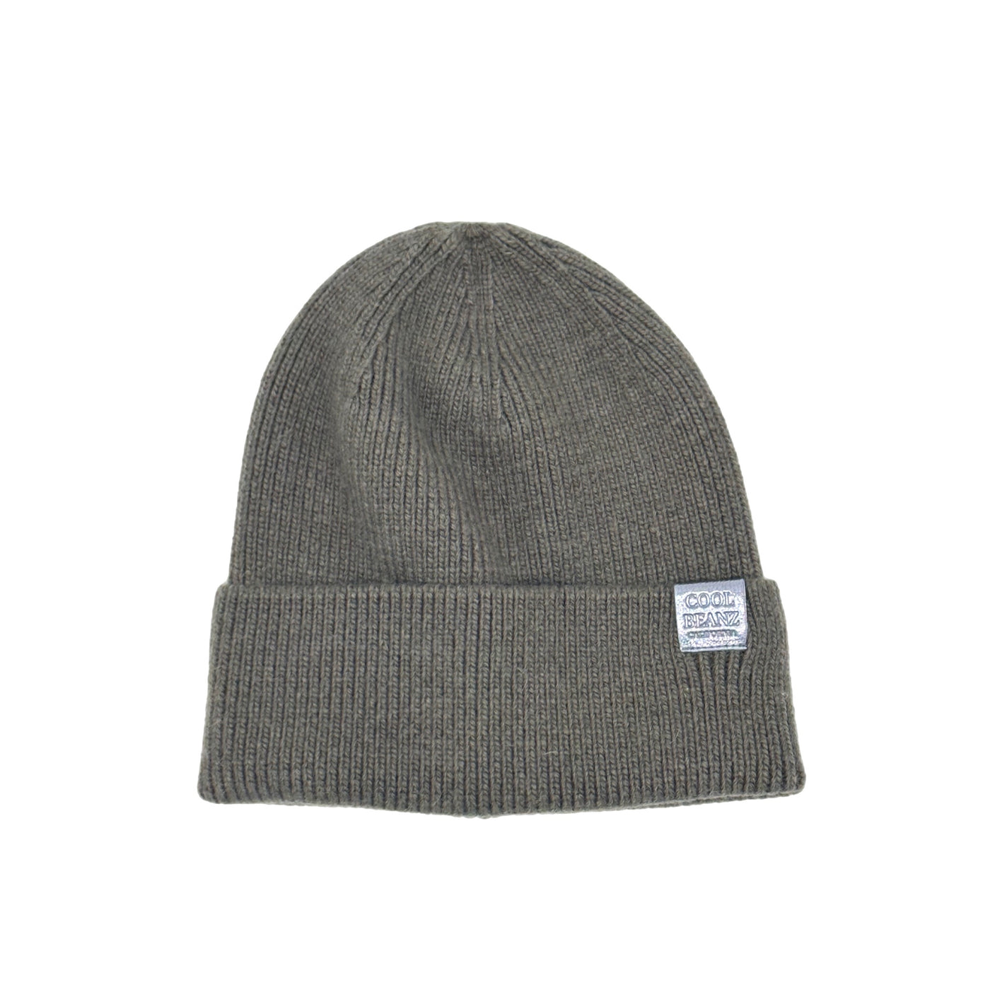 Buttery soft cashmere blend beanz with signature CB label. Natural Faux removable pom.